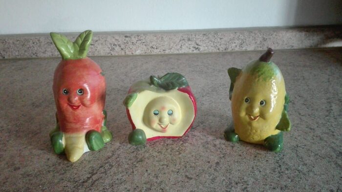 Piccoli e simpatici salvadai in ceramica a forma di frutto. 4c ognuno. Sono nuovi mai usati .