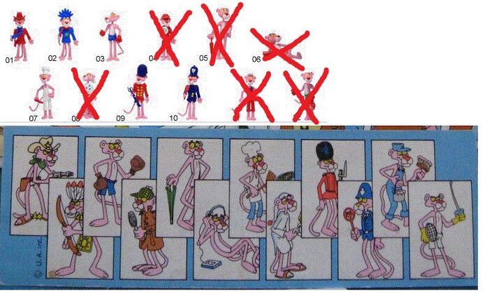 continua la ricerca delle sorpresine e cartine mancanti...foto 1: looney tunes active (mancano le cartine)foto 2: supergiraffe (manca davanti moto della 3 e piedistallo della 8)foto 3: puffi 1989 (mancano i personaggi in foto più i pezzi cerchiati più la cartina)foto 4: puffi 1996 (mancano i personaggi in foto più i pezzi cerchiati più la seconda cartina)foto 5: paperino e i suoi amici ( mancano i personaggi in foto più i pezzi cerchiati più le cartine)foto 6: pantera rosa 1989 (mancano i personaggi in foto, più la coda del n.5 più cartina) .