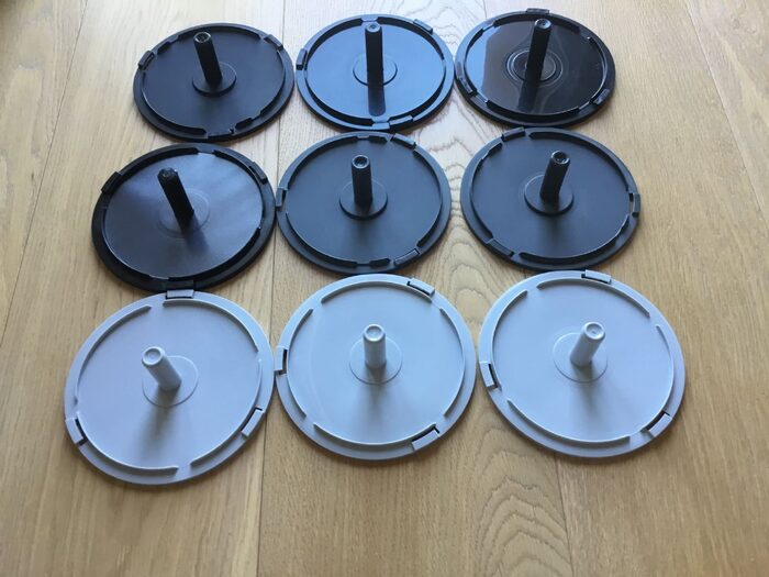 Supporti per CD, 2 neri, 2 grigi scuri e 3 grigi chiari. Se a qualcuno possono servire anche per usi creativi, provo a non buttare... 1 credito, giusto per l’impacchettamento, oppure regalo a chi prende altro da me e li chiede. .