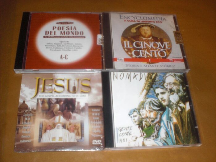 Ne regalo uno a chi scambia con me oppure 1 credito ciascuno. Oppure 4 cd a 3 crediti.Cd: Poesia del mondo, Jesus (Gospel/nuovo), Encyclomedia (Il cinquecento/nuovo), Nomadi (Gente come noi GIA'' SCAMBIATO).Cd nuovo Canti natalizi dei bambini di Terra Santa. .