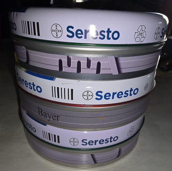 3 scatole tonde alluminio, nuove, contenevano i collari dei miei amorini.Io le utilizzate per contenere minuteria, ecc... queste non le uso e le cedo.Misure interne 12 x 3 cm .