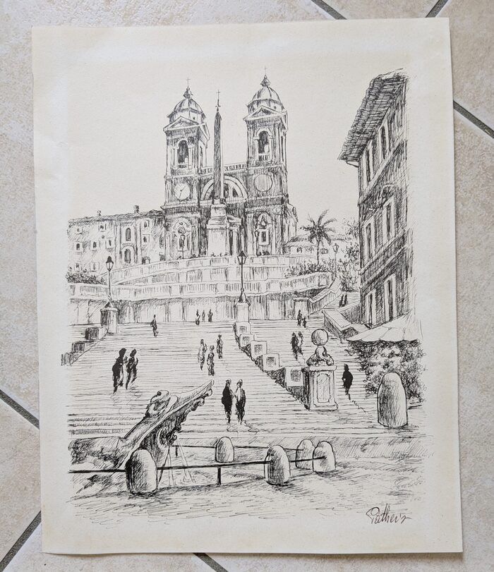 1) misure cm 28x35,5 - rappresenta Piazza di Spagna (RM). E' stata recuperata da un quadro