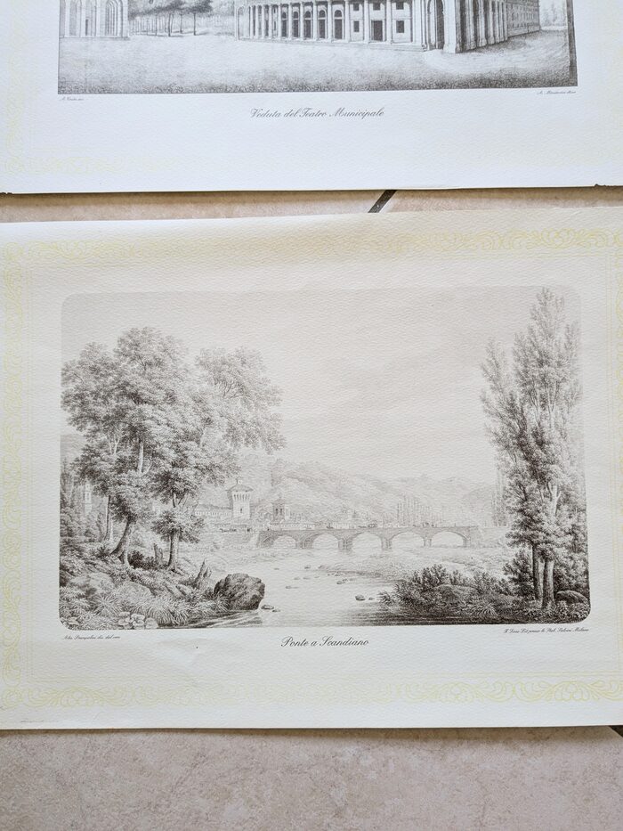 3) misure cm 38x28,5 - edita da Il Resto del Carlino in collaborazione con la (allora) Cassa di Risparmio di Reggio Emilia, raffigura una veduta di un ponte sul Tresinaro in zona Scandiano (RE). Sullo sfondo la Rocca dei Boiardo