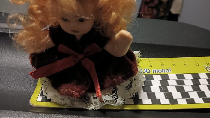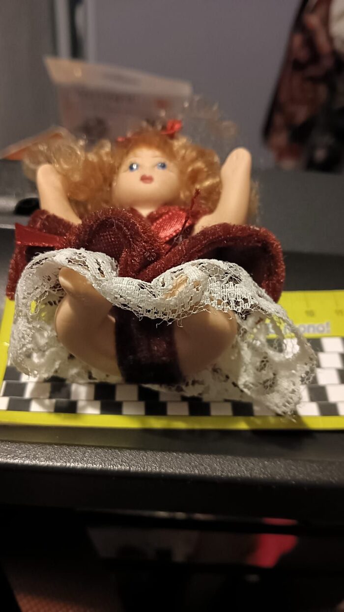 in ceramica e stoffa,solo esposta le braccia e legmabe non si muovono è un unico pezzo .