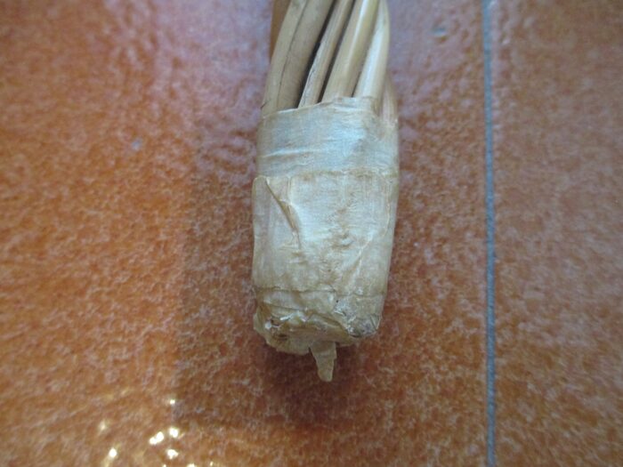 Battipanni in vimini usurato dal fondo del manico (è stato avvolto con del nastro adesivo di carta).