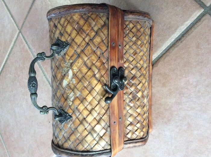 Con maniglia e chiusura in metallo, cm 15 circa .