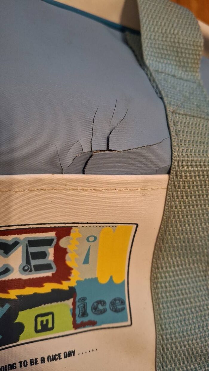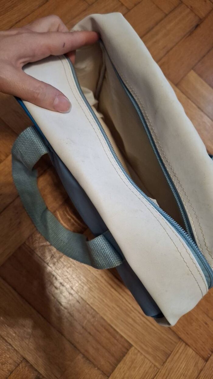Borsa termica. Di fuori ha dei punti in cui si è sbucciata e invece dentro è a posto e pulito .