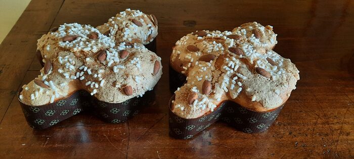 Buona Pasqua a tutti, anche quest''anno il fantastico lievito madre di Manuel 81 ha dato i suoi frutti.Alcuni passaggi della preparazione e ovviamente non possono mancare le colombine di cioccolato per i più golosi. .