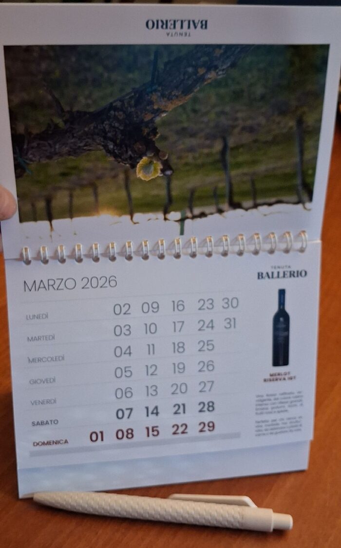 Calendario da tavolo 2026Logato da casa vinicola, con foto .