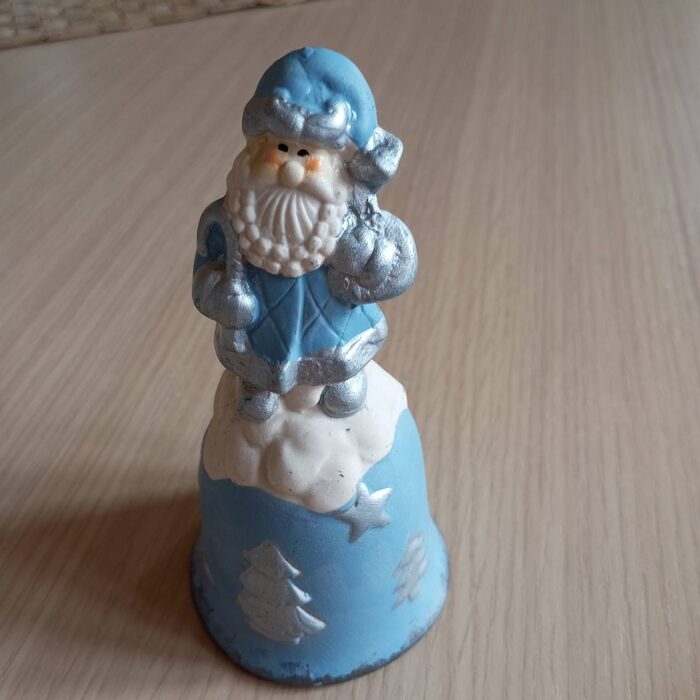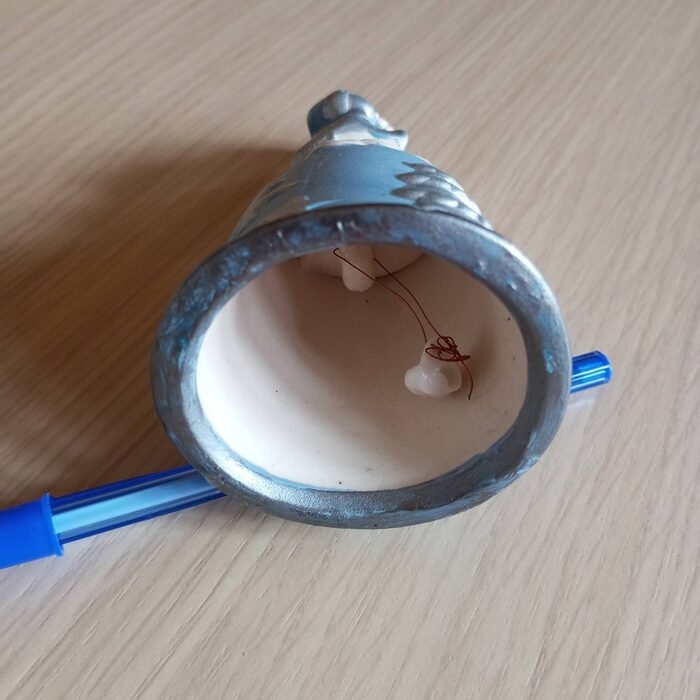 Campanella natalizia in cotto,celeste e argento.Presa usata in baratto.Come in foto. .