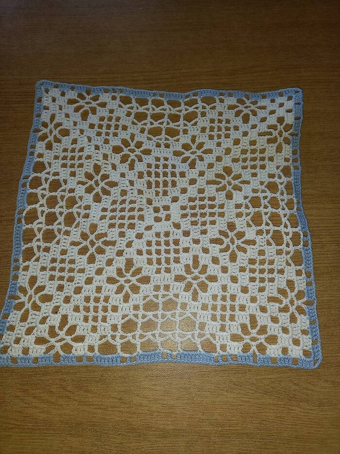 Centrino in cotone,fatto a mano. Lavato a mano e inamidato. Forma quadrata,lato cm 21 .