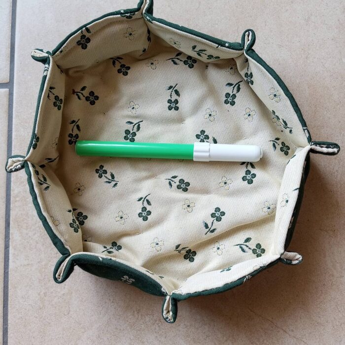 Cestino artigianale in tessuto,vari utilizzi,come in fotoPennarello per le proporzioni.Lo spedisco piegato .