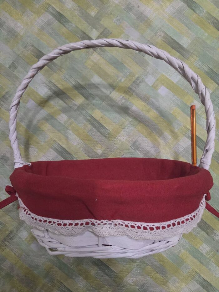 Cestino medio con manico come nuovo tipo vimini bianco con foderatura rossa .