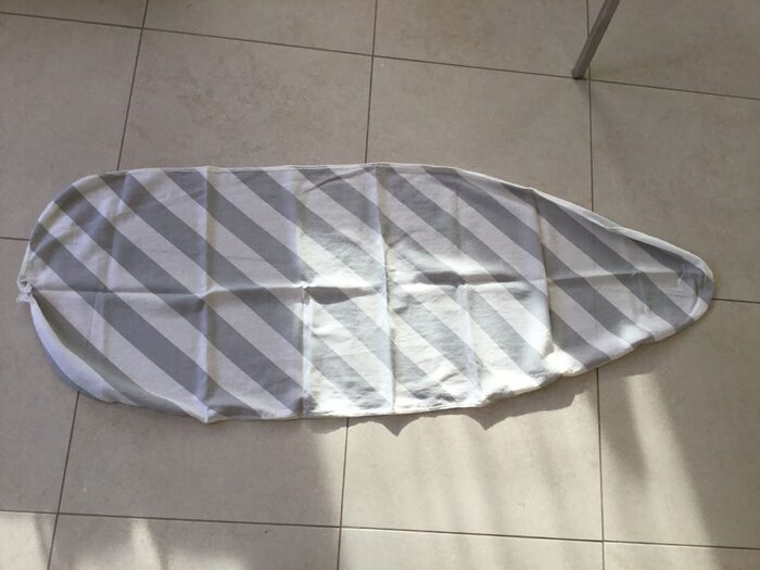 Copri asse da stiro a righe bianche e grigie.Misura 125x47, quindi per assi leggermente più piccole visto che deve avvolgere anche i bordi. .