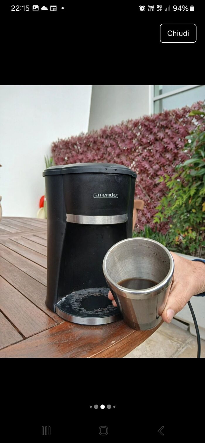 Macchinetta per caffè lungo americano. Va messa l''acqua e la polvere del caffè. Poi va accesa e dovete attendere l''uscita del caffè quando l''acqua arriva a temperatura. C''è anche la tazza termica. Funziona perché l''ho provata. Spedisco in collettiva a gennaio .