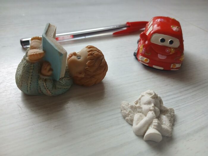Due piccoli soprammobili da esporre. Per quanto riguarda il furgoncino, segnalo la mancanza dello specchietto, vedere foto. Angioletto già scambiato. .