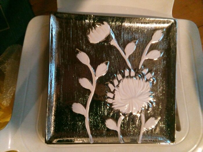 Piatto quadrato centrotavola nuovo color argento e bianco. 28x28 cm. Non ho la scatola .