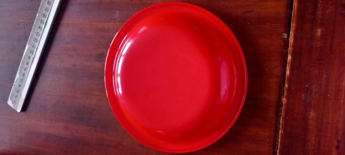 Piatto da frutta di vetro trasparente sopra e smaltato sotto