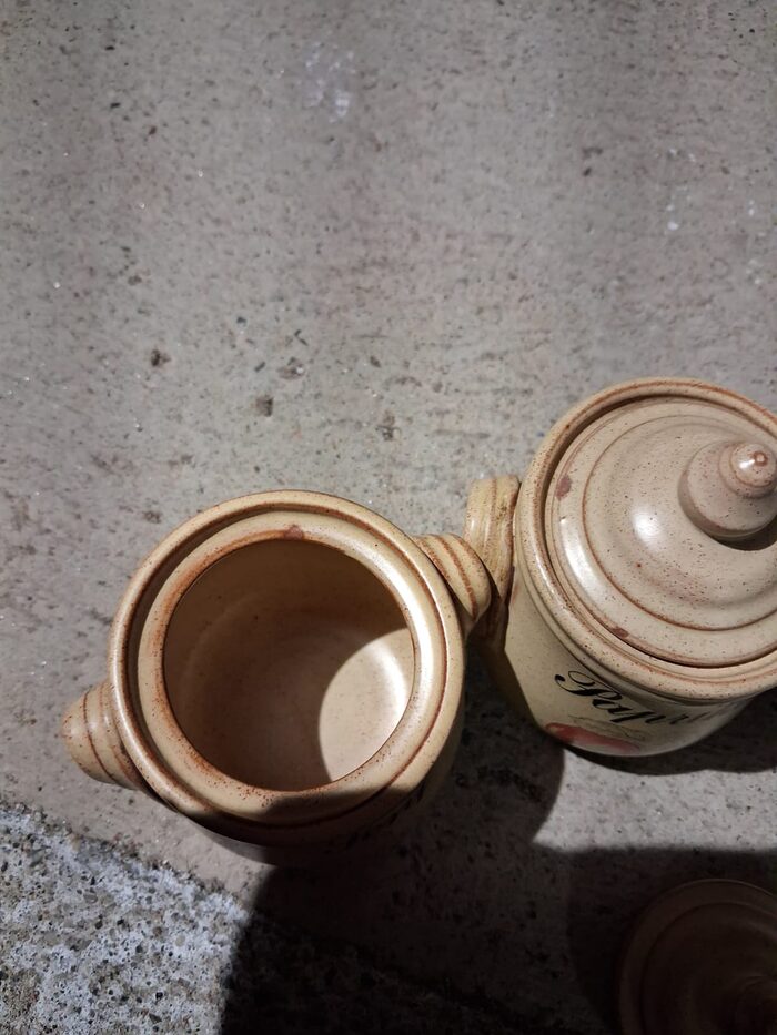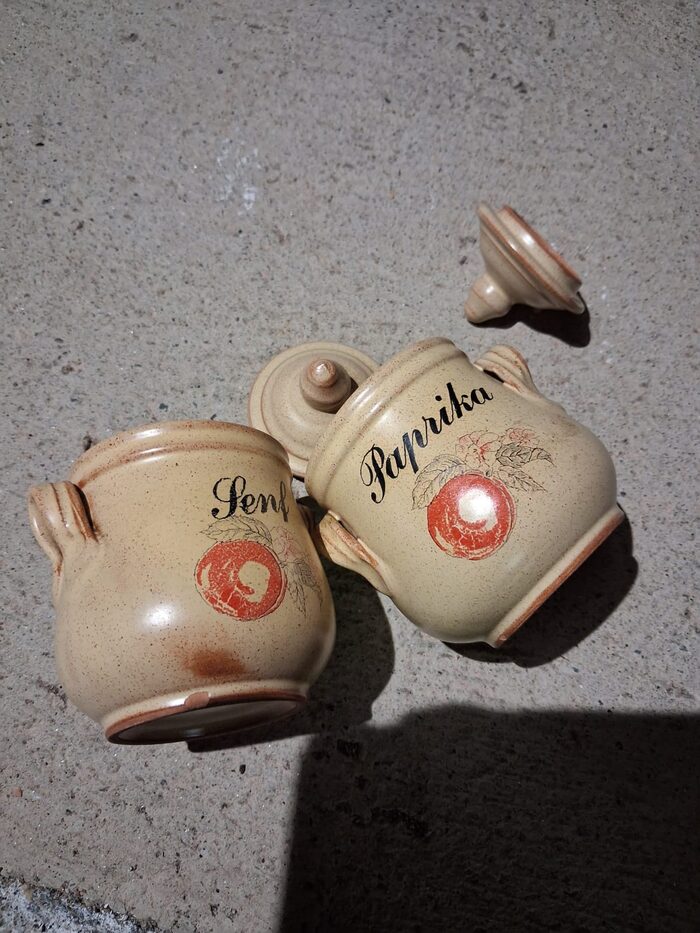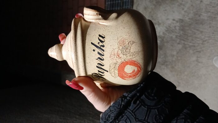 H 9 cm. Rovinata in 2 punti ma dentro perfette. Mai usato per le spezie .