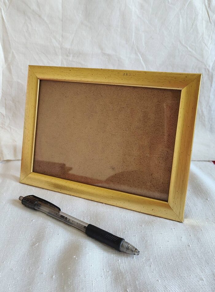 Portafoto da tavolo, dorato, effetto legno. Possibilità sia verticale che orizzontale.