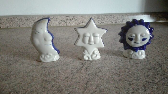 Simpatico portastuzzicadenti in ceramica a forma di luna. Nuovo.Gli altri a forma di sole e stella che si vedono nella foto sono già stati scambiati .
