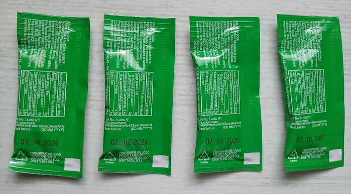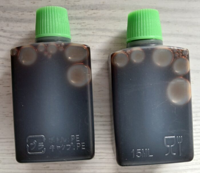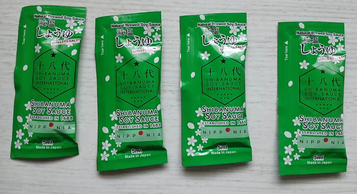 Quattro bustine di salsa di soia da 5 ml ciascuna più due bottigliette da 15 ml. Non divido. .
