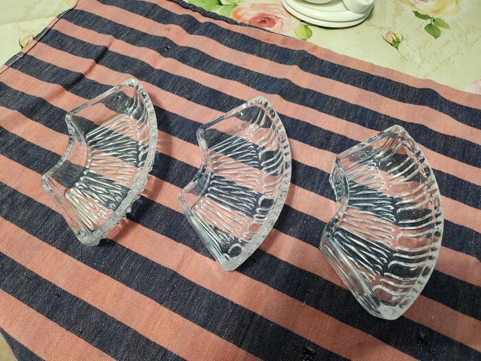 3 pezzi di antipastiera in vetro lavorato, 5 crediti totali .