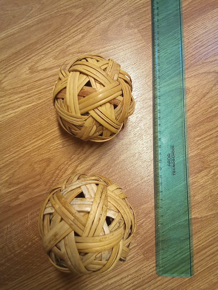 Sfere decorative in legno, prese da Altromercato. Diametro 10 cm .