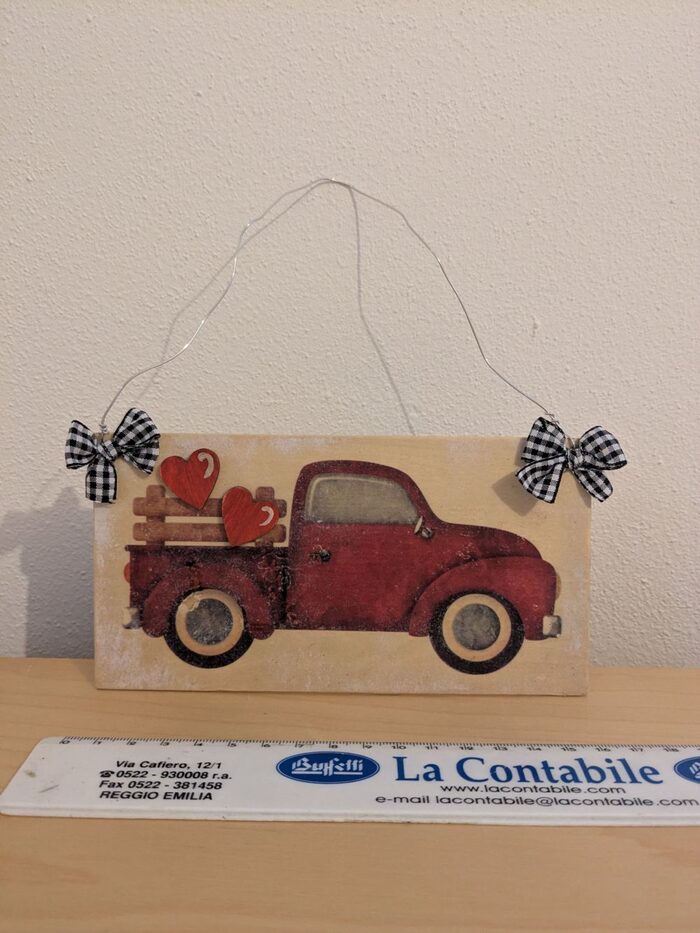 Targhetta da appendere realizzata a mano, in legno leggero. .