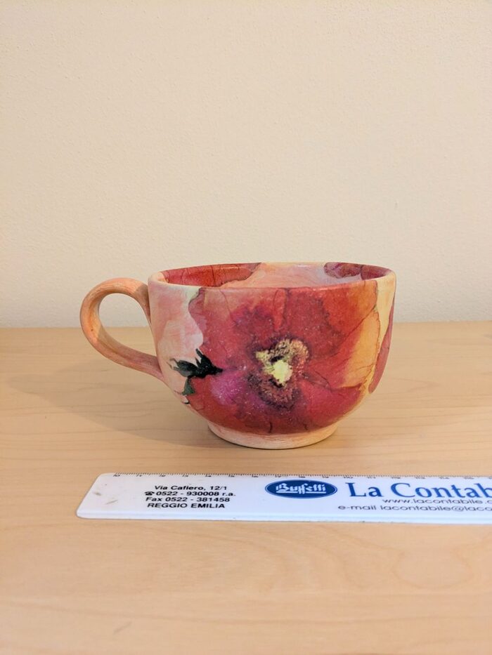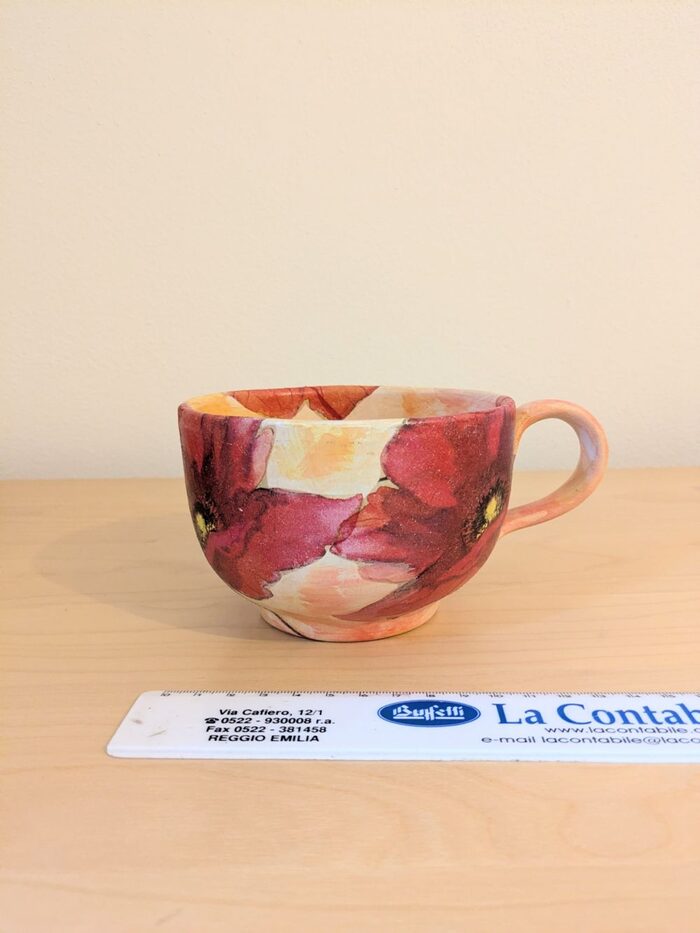 Una bella tazzona decorata a decoupage su tutta la superficie. Può diventare un bel porta vaso oppure quello che volete voi. .