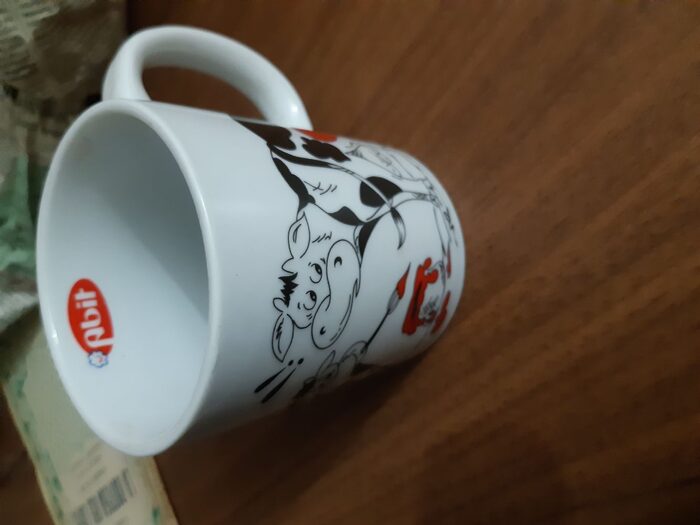 Bianca con mucche disegnate. .