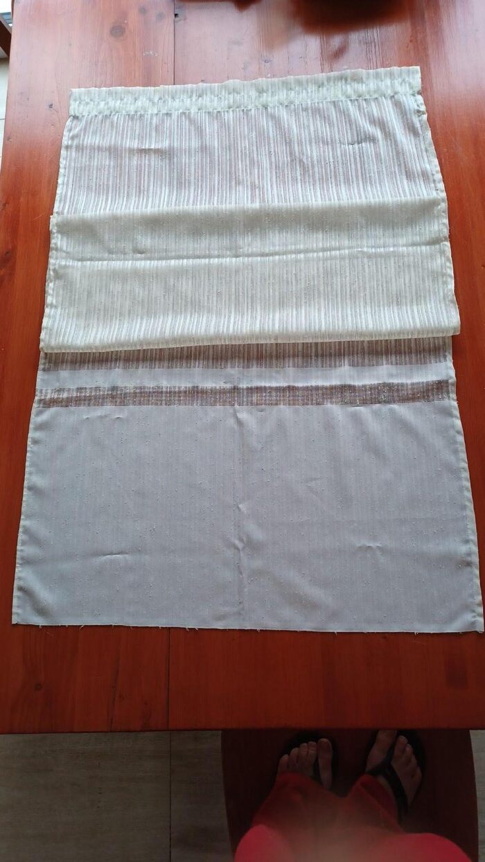 Tendina singola color crema cm.64x142. Ho fatto una piega per poterla forografare. Mi sembra sintetico misto cotone.Consegna a mano o collettiva. .