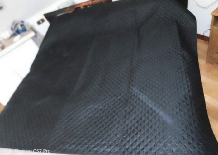 Tessuto d'arredamento trapuntato nero marca Quechua la foto e sul letto matrimoniale per misure .