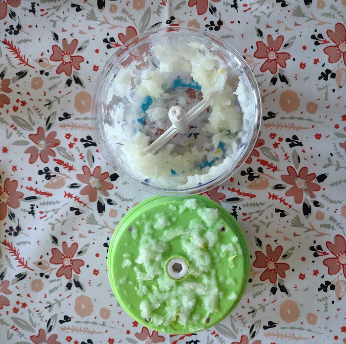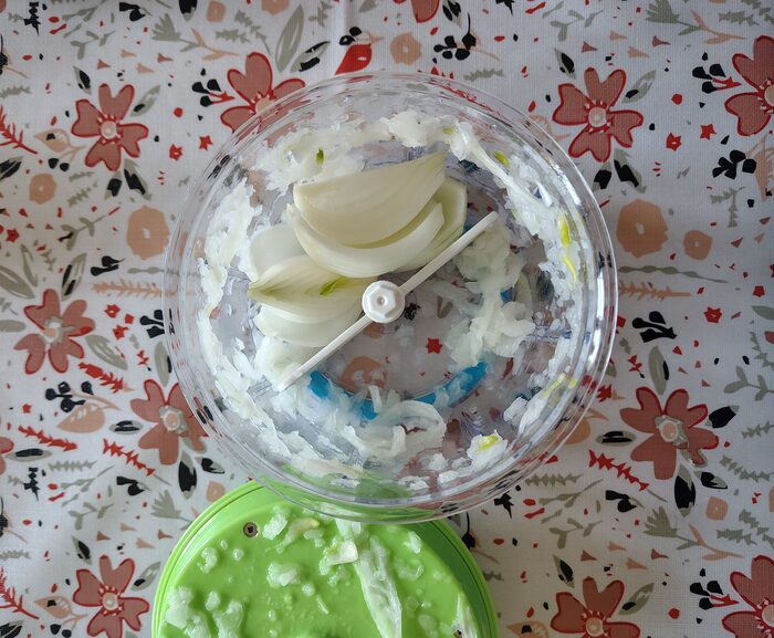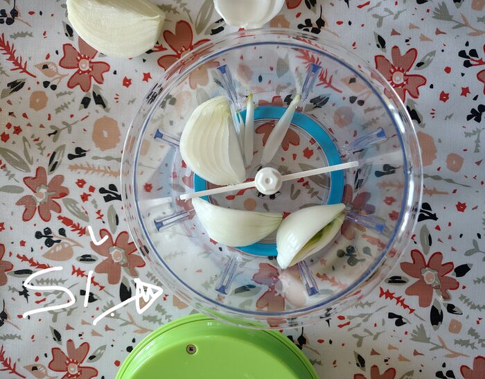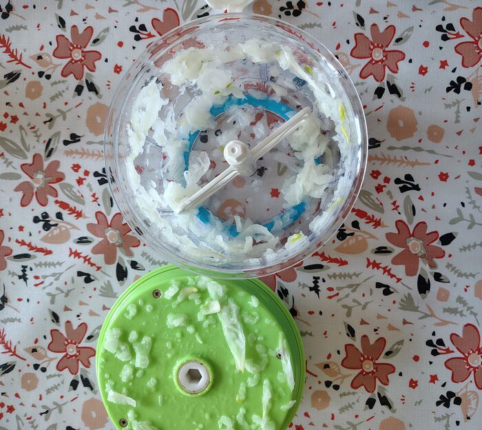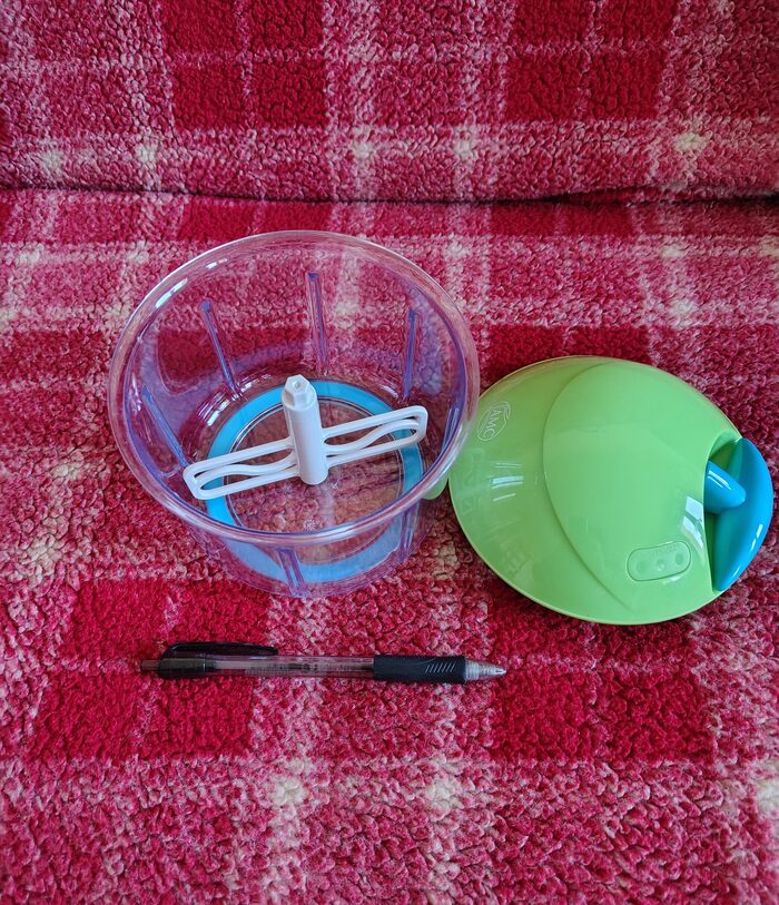 Tritatutto manuale con cordicella marca AMC.Preso a uno swap party ma non lo uso. .