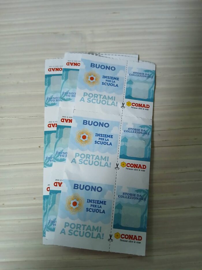 18 buoni scuola Conad. I bollini invece li tengo io. Posso inviare tramite WA i codici. Se vi va bene potete mettere consegna a mano senza spendere stelline. .
