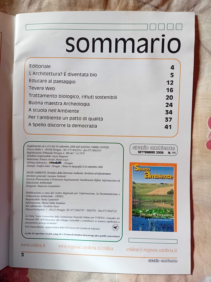 Spazio Ambiente, fascicoletto del 2006, vedi indice. Credo mai letto, ma ci era caduta dell'acqua e vedi foto (ma è asciutto da sempre, non dà fastidio).