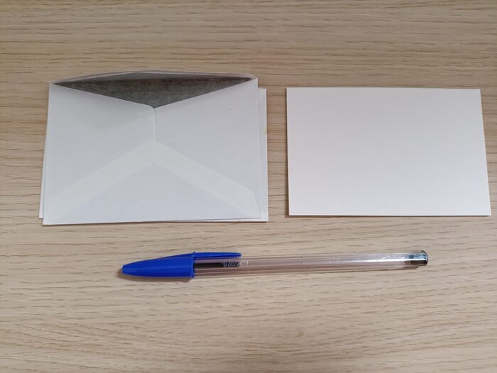Set di 4 bigliettini con relative buste, bianchi. 7x11 cm .
