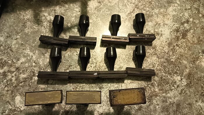 in materiale plastico,ho tolto la gommina dei precedenti timbri ,due timbri q credito .