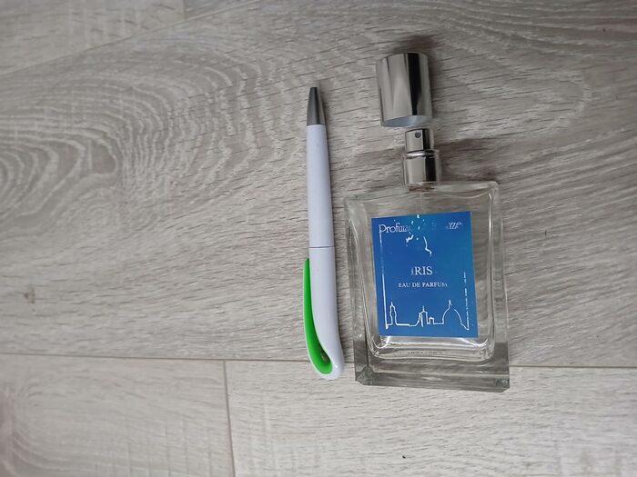 Bottiglia profumo vuota se a qualcuno può servire. Io non sono riuscita ad aprirla. Penna per le dimensioni. .