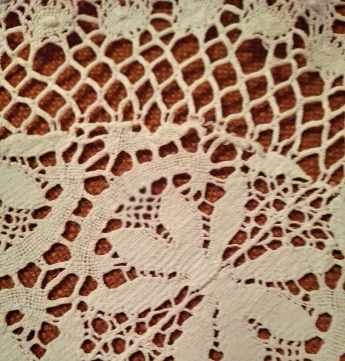 E'' in cotone ma non é realizzato a mano all''uncinetto.Dimensione pacchetto: micro .