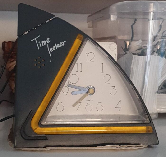 Orologio sveglia parlante che risponde ad un fischio o di rumore di uguale intensità.Questa in foto è quella che abbiamo in casa.Ne avevamo due ed ora tutte e due non funzionano più e sono irreparabili... .