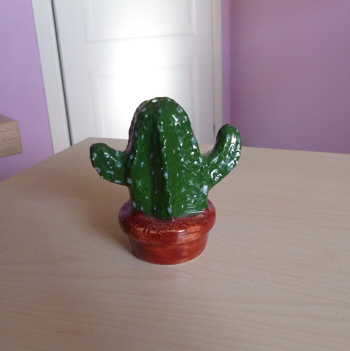 Portasale in ceramica a forma di cactus, può essere anche usato come decorazione. Alto 9 cm. .