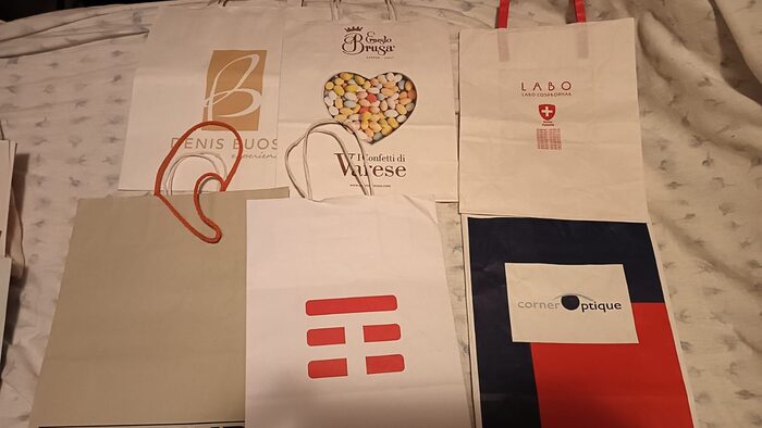sacchettini carta di vario tipo 3 crediti a foto(nella foto ci sono vari sacchettini li cedo a gruppo così come sono non intercambio i sacchetti perchè già pronti per la spedizione 1) misure circa 30x262 )misure circa 30x263) misure circa 40x354) misure circa 25x355) misure circa 40x306) misure circa 27x22 .