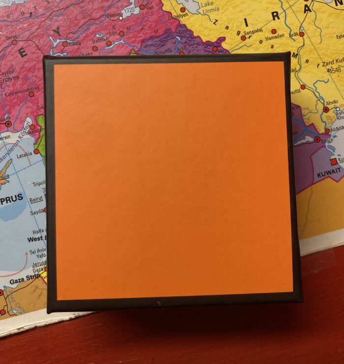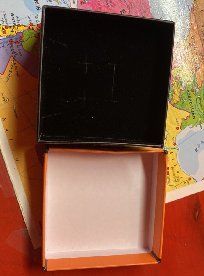 Scatola arancione, 7x7 cm, adatta a regalare gioielli. .