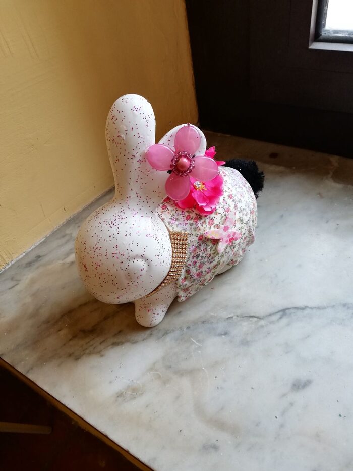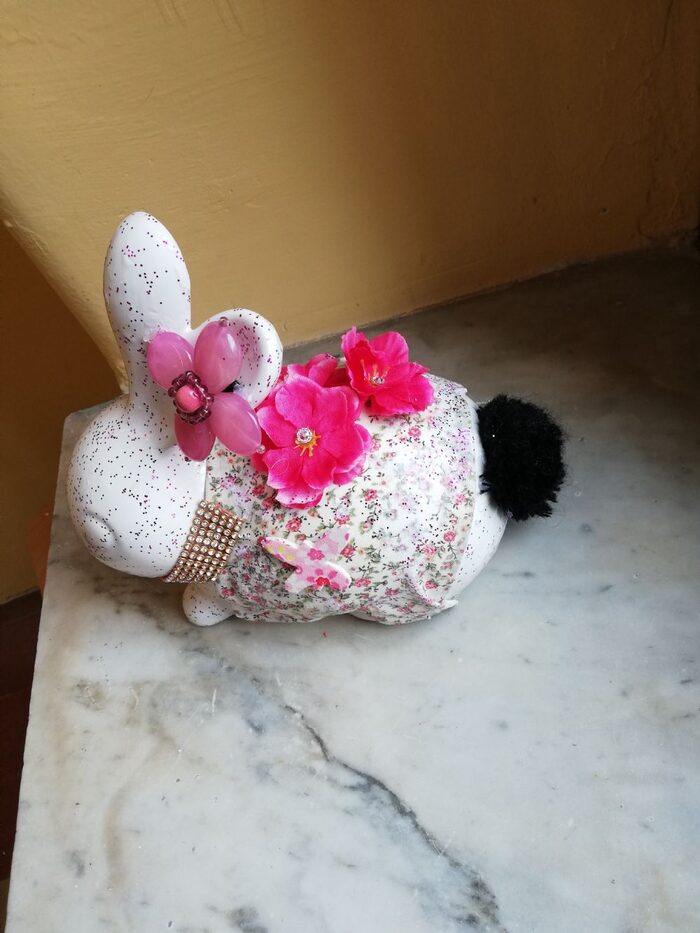Con il vostro materiale ho potuto realizzare questo lavoretto primaverile/pasquale. Ricordo solo che il coniglio in ceramica è di Alloro, ma so che ognuno di voi mi ha fornito una decorazione specifica e la possibilità di veder sorridere chi non ha modo di esprimersi a parole.Quindi sempre grazie mille dal più profondo del cuore! .