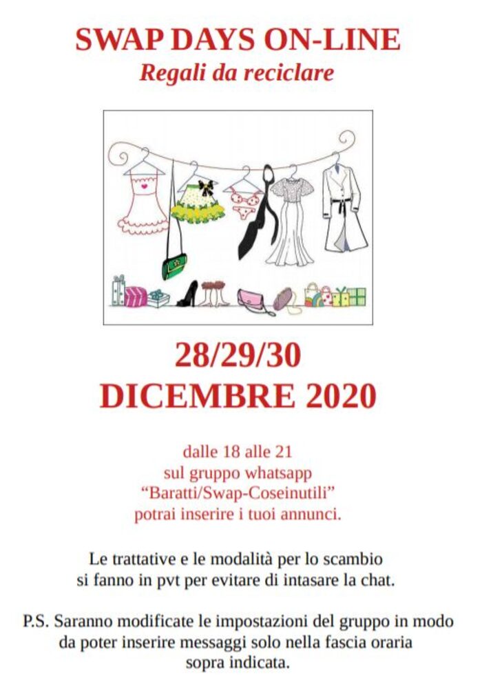 Novità in arrivo solo per le ragazze di Cuneo!!! Uno swap on-line su whatsapp.Se vuoi partecipare mi contatti in pvt per essere inserita sul gruppo “Baratti/Swap-Coseinutili” .